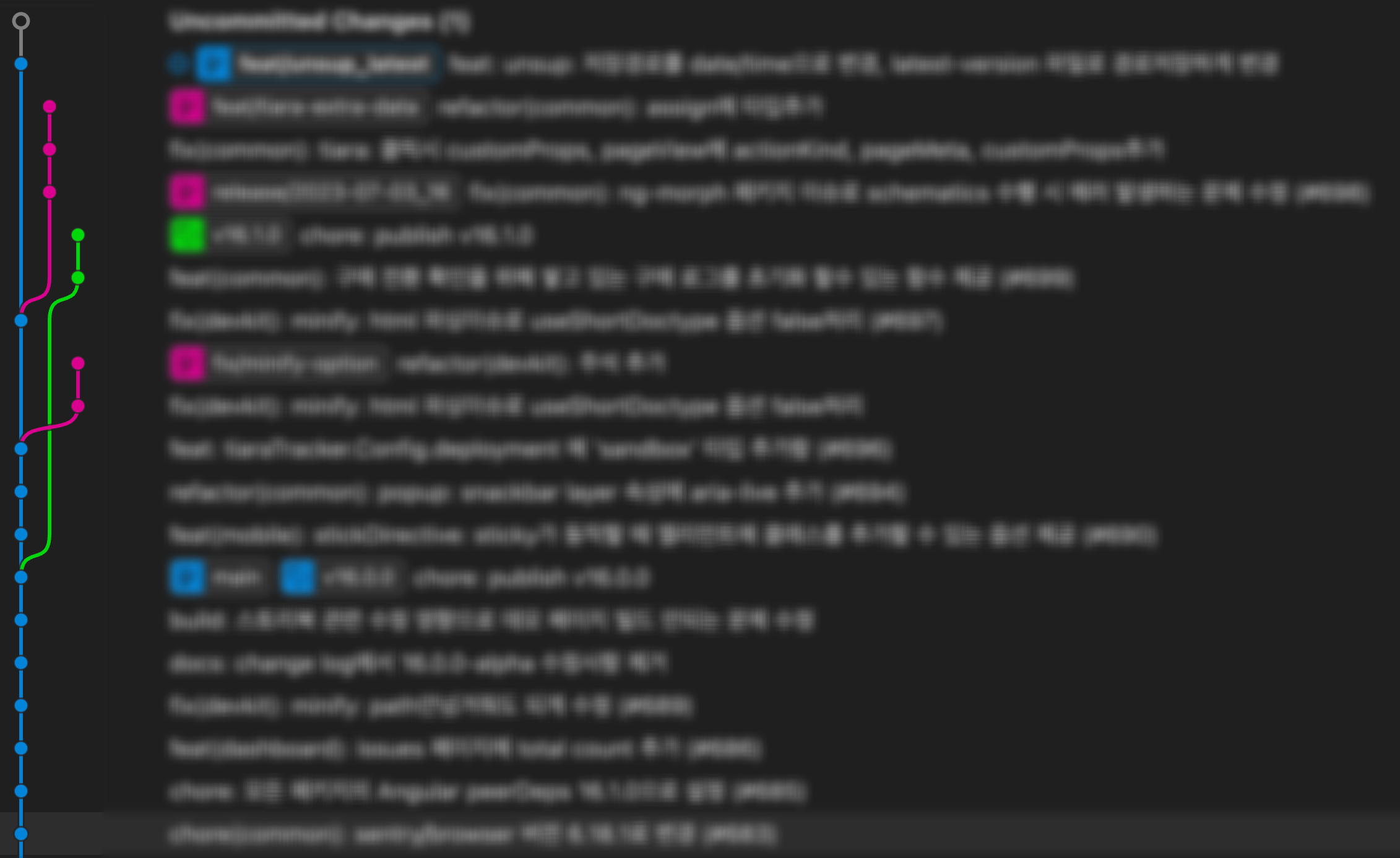 등등 불필요한 커밋 내역들이 그대로 남아있다